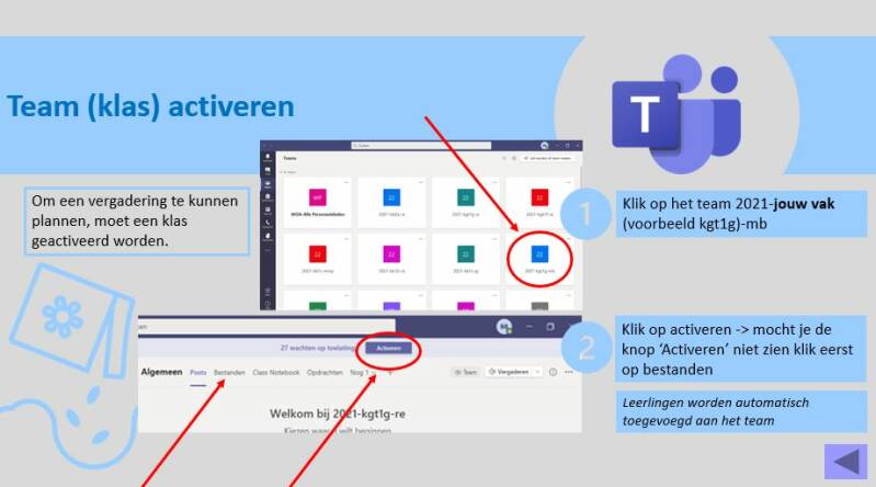 Team (klas) activeren